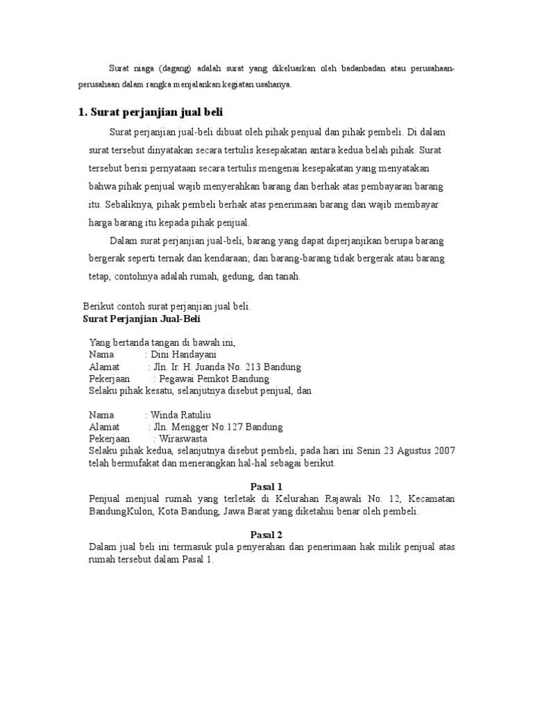 Surat dalam proses perniagaan ini disebut dengan surat niaga. Situs penyedia berbagai contoh surat, seperti surat lamaran, pernyataan, izin, undangan dan contoh surat lainya. Hal ini karena berkaitan dengan tujuan menjalankan usaha yakni mendapat. Salah satu jenis surat niaga yaitu surat pesanan surat ini merupakan surat yang berasal dari pembeli yang dikirimkan kepada penjual yang isinya berupa pesanan untuk membeli sejumlah produk ataupun memesan suatu jasa salah satu contoh surat perjanjian adalah surat perjanjian sewa menyewa. Semoga dapat menambah pengetahuan anda mengenai surat.