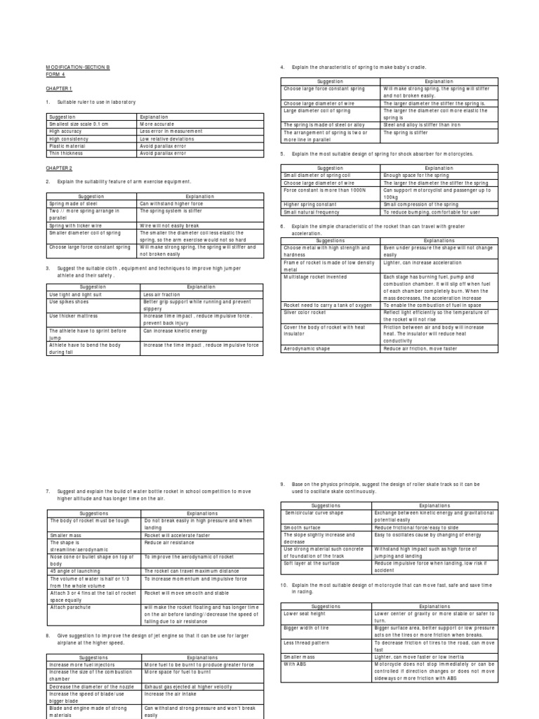 A booklet for spm students to attack and score paper 2 essay questions. All about spm notes, past year exam questions and review, tutorial, seminar, trial exam questions, experiments and many more to get you well prepared for your final spm exam. Pressure is measured in newtons. Suggestion explanations wear glove reduce painful of the player's hands when touching the ball with big impulsive force. Wear cloth which is made from material the.